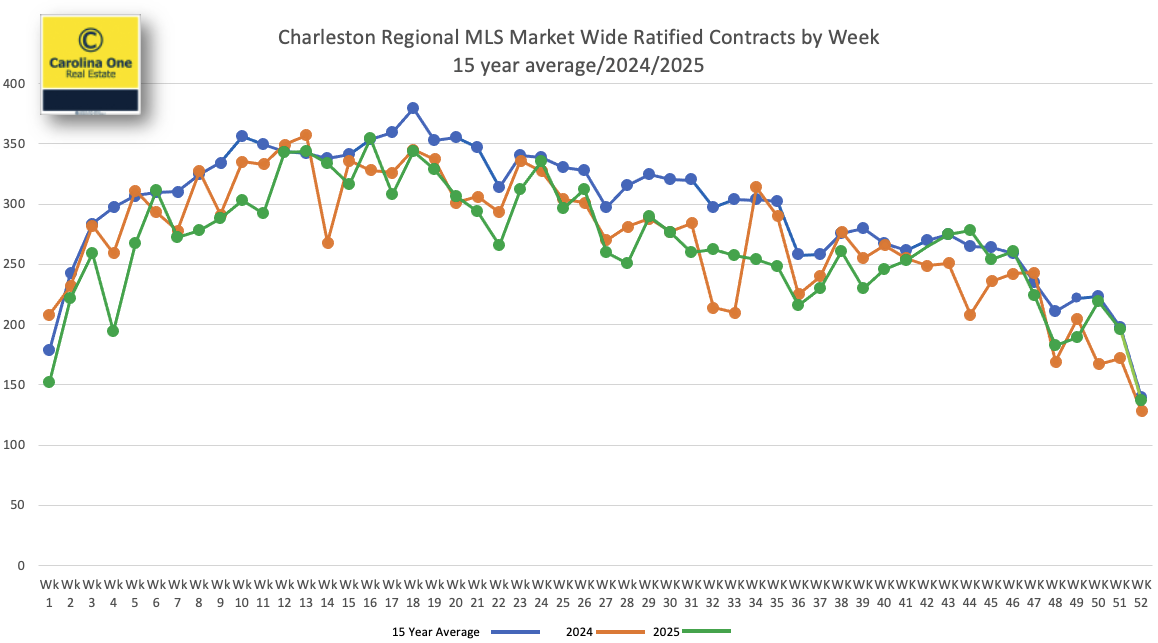 Follow the green line. In our weekly contracts chart, the green line is 2025, orange is 2024, and blue is the 15‑year weekly average.