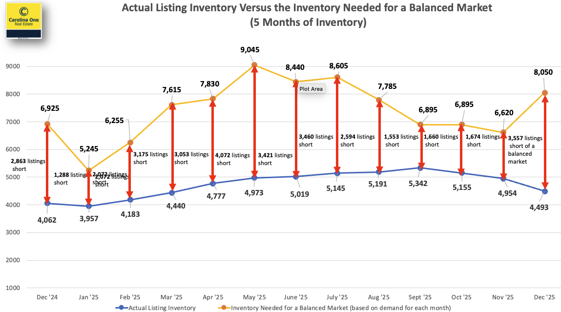 We saw roughly 1,400 new listings hit the market in December—a significant jump from last year. However, we still need approximately 3,600 additional listings to reach true equilibrium. The market is moving toward balance, but we aren’t there yet.