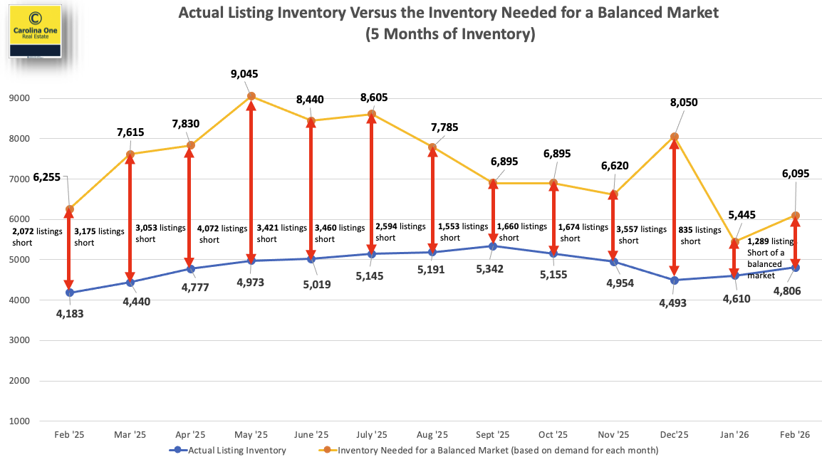 We currently have roughly 4,800 active listings. While that is a healthy increase from the “floor” of 2022, we still need 1,300 additional listings to reach a balanced market. With demand peaking between now and late April, expect the competition for well-priced homes to remain stiff.